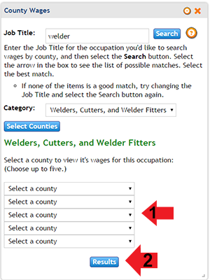 The County Wages widget allows a user to search an occupation's salary level by geographic location around Wisconsin. To use this widget,